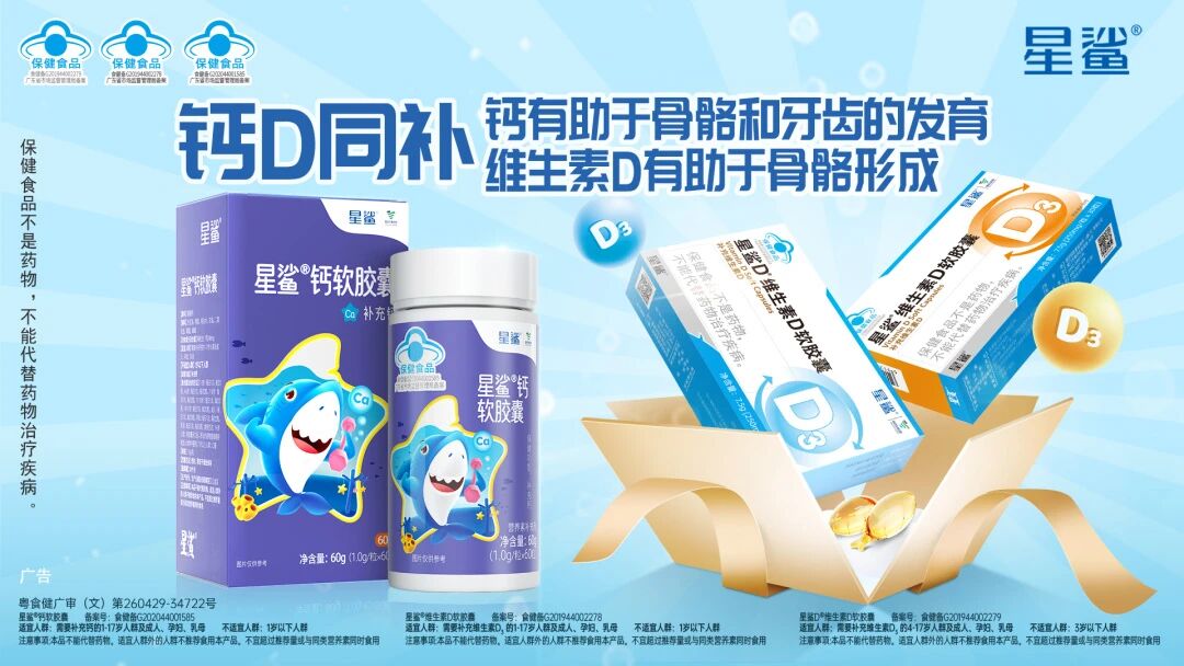 上市多年始终坚持优异口碑的星鲨?维生素D与钙软胶囊,,,,,,均以高标准把控质料品质,,,,,,维生素D能增进钙的高效吸收,,,,,,钙则为骨骼发育提供“焦点动力”,,,,,,二者协同形成“1+1>2”的营养效应。。。。。。。。