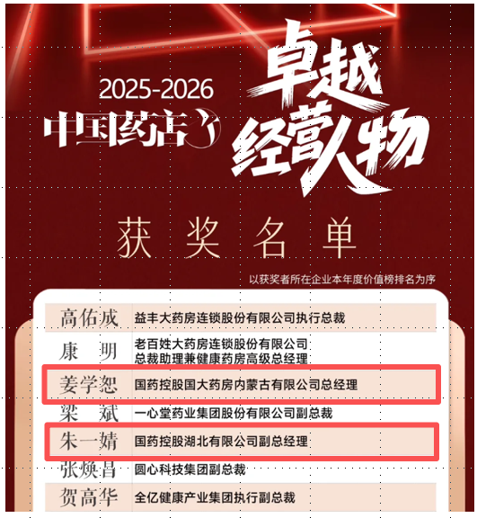 别的,,,,,,,在小我私家颁奖环节,,,,,,,MK(体育科技有限公司)体育·官方网站控股国大药房内蒙古有限公司总司理姜学恕、MK(体育科技有限公司)体育·官方网站控股湖北有限公司副总司理朱一婧代表公司荣获2025-2026年度中MK(体育科技有限公司)体育·官方网站店卓越谋划人物。。。。。。。。